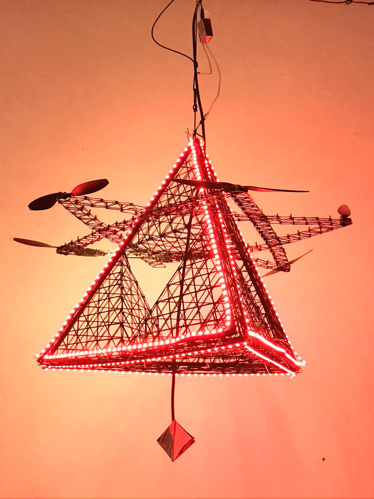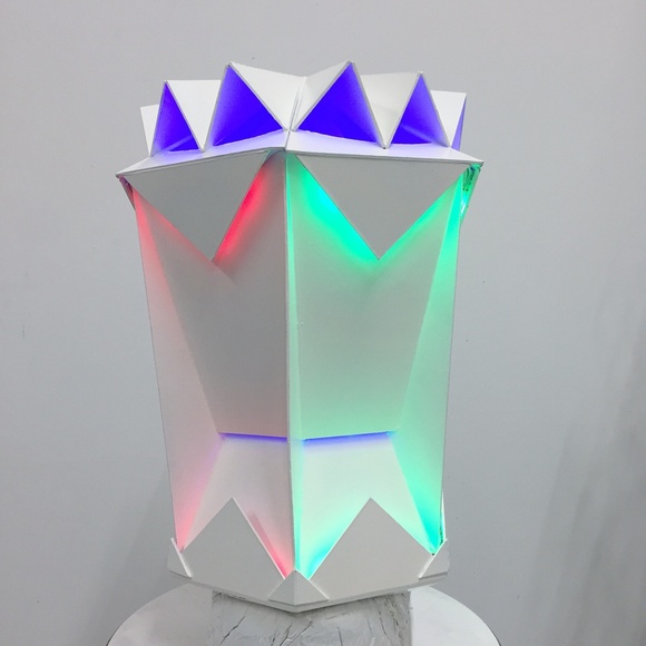 Meine Hut entstandt aus der Auseinandersetzung von Licht und Schatten. Ein Lackierter Papphut ausgestattet mit Led Licht.
