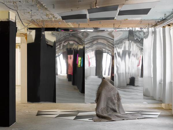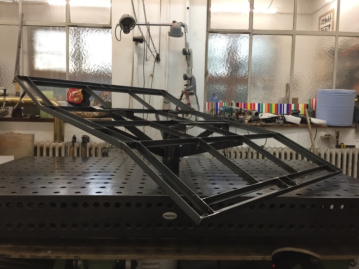 Für einen fliegenden Teppich aus Keramik mit stehenden Skulpturen habe ich einen Stahlteppich entworfen und produziert.