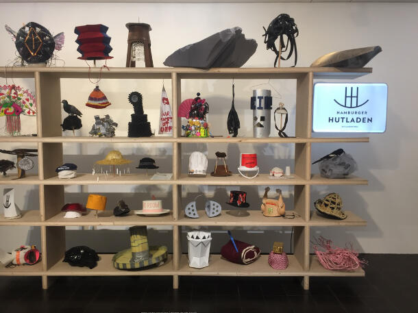 Der Hamburger Hutladen, eine Aktion von Jan Holtmann. Es wurden ca 30 Hamburger Künstler gefragt einen Hut zu kreieren der Ihrer Arbeit auf die eine oder anderere Weise wiederspiegelt.