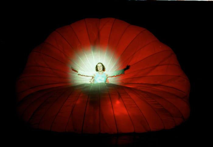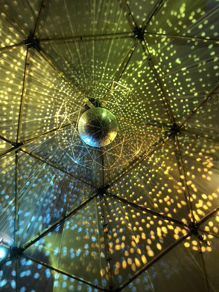 EINE BUCKMINSTER FULLER KONSTRUKTION AUS BAMBUS MIT FALSCHIRM