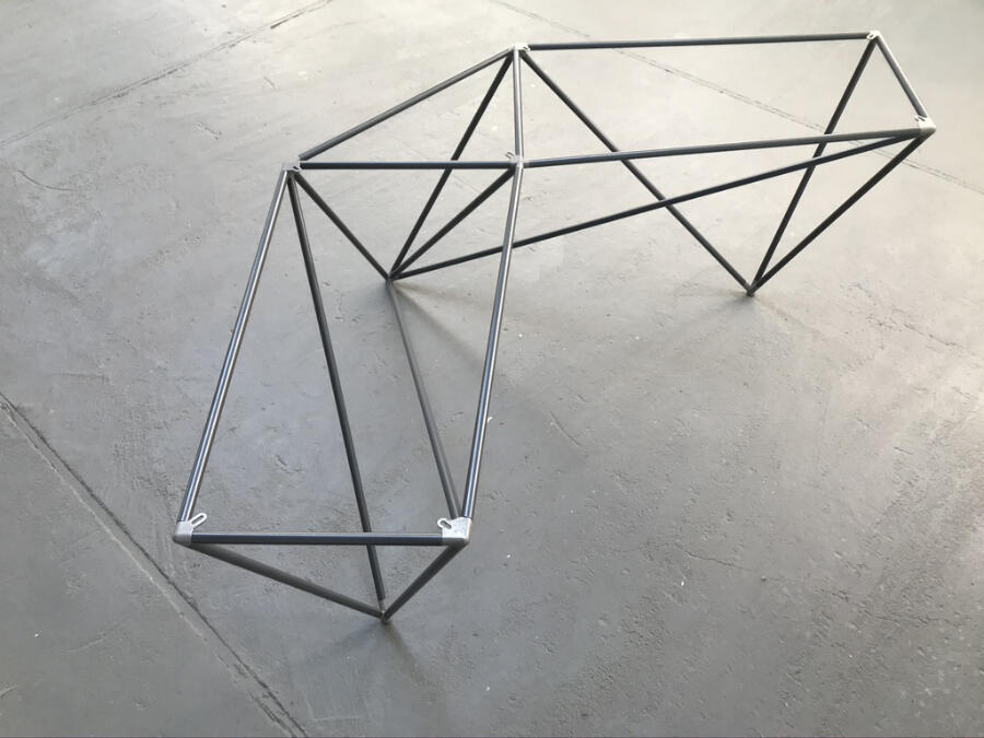Ein Tischgestell mit aus Titan 3 D gedruckten Verbindern.