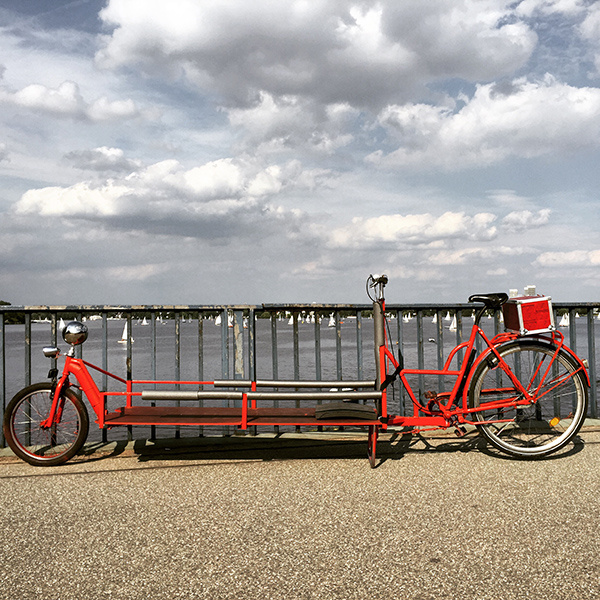 Der Umzug in die neue Werkstatt bringt auch neue Ansprüche an die Mobilität. Das Wasser fehlt, aber das Auto kann auch gleich weg. Also her mit dem neuen Gefährt, das Alles kann was ich brauche. Einfach Spaß pur, eleganter massvoller Transport, keine Stafzettel, kein Stau, kein Benzin, dicke Wadeln, kräftig Radeln und jede Menge leuchtende Kindaugen. Das spaßigeste Projekt 2015.